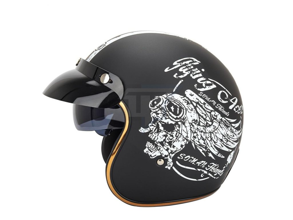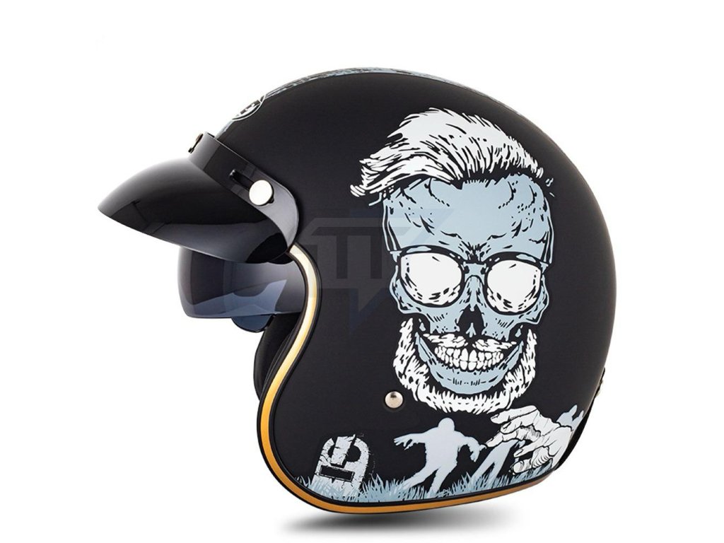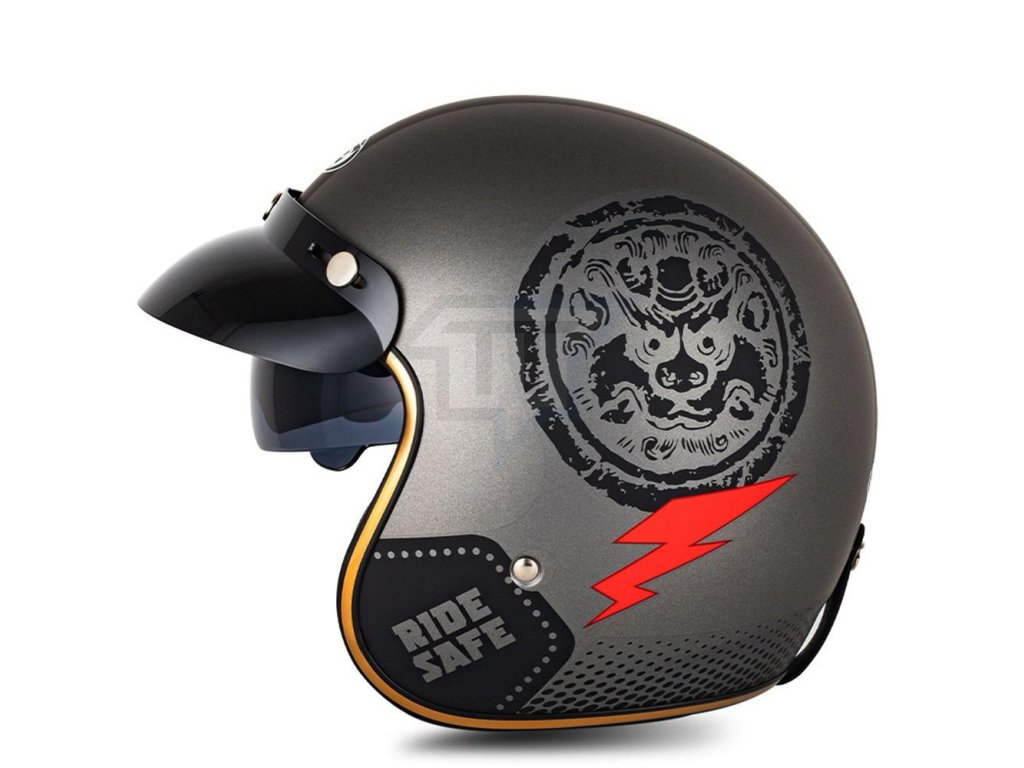 Această cască include, de asemenea, uncapac practic în formă de ochelari . Puteți pur și simplu să glisați acest capac pentru avă proteja ochii de soare sau de insectele zburătoare în timp ce călătoriți. Iar atunci când nu aveți nevoie de ele chiar acum,pur și simplu glisați-le înapoi în cască. Acest design inovator nu este doar funcțional, ci oferă, de asemenea, căștii acel aspect retro adevărat.