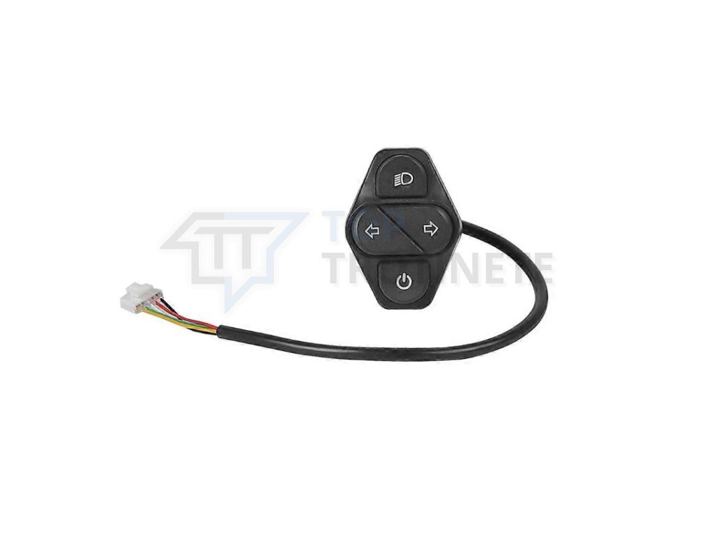 Control 3 în 1: Nu doar aprinde luminile față și spate, ci controlează mecanic și semnalizatoarele (stânga și dreapta) și include butonul principal de pornire/oprire (power).