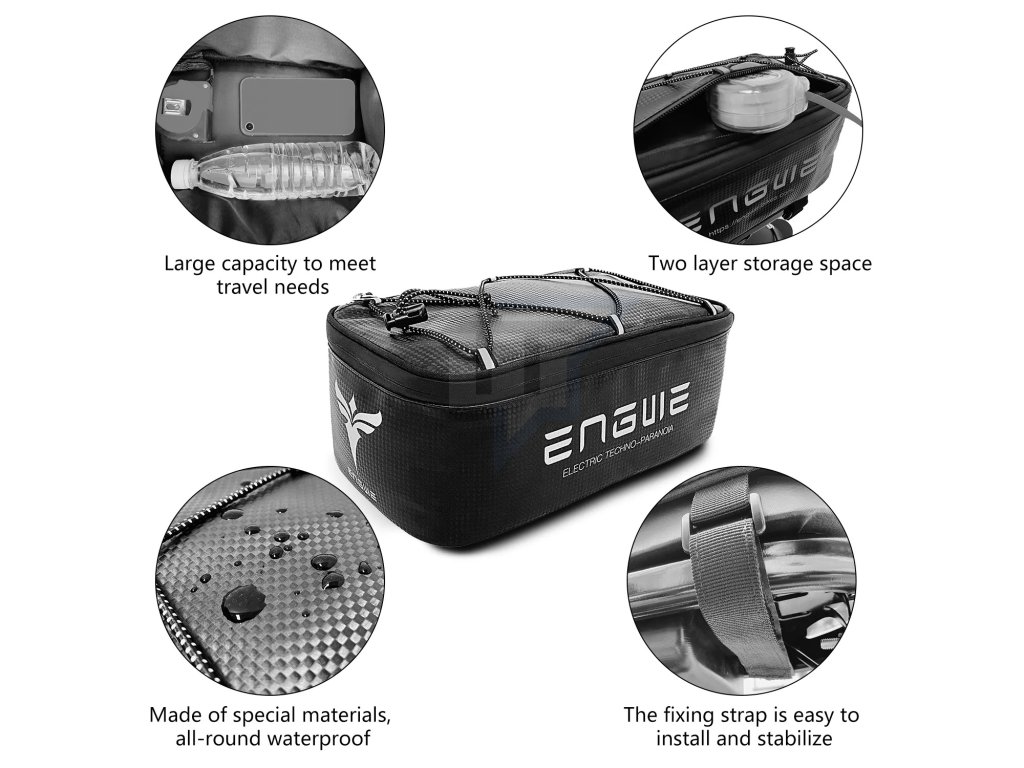 - Geanta pentru bicicleteENGWE vine cu curele reglabile cu velcro,facilitează instalarea și descărcarea în câteva secunde, se potrivește cumajoritatea rafturilor de biciclete și face călătoria mai ușoară.