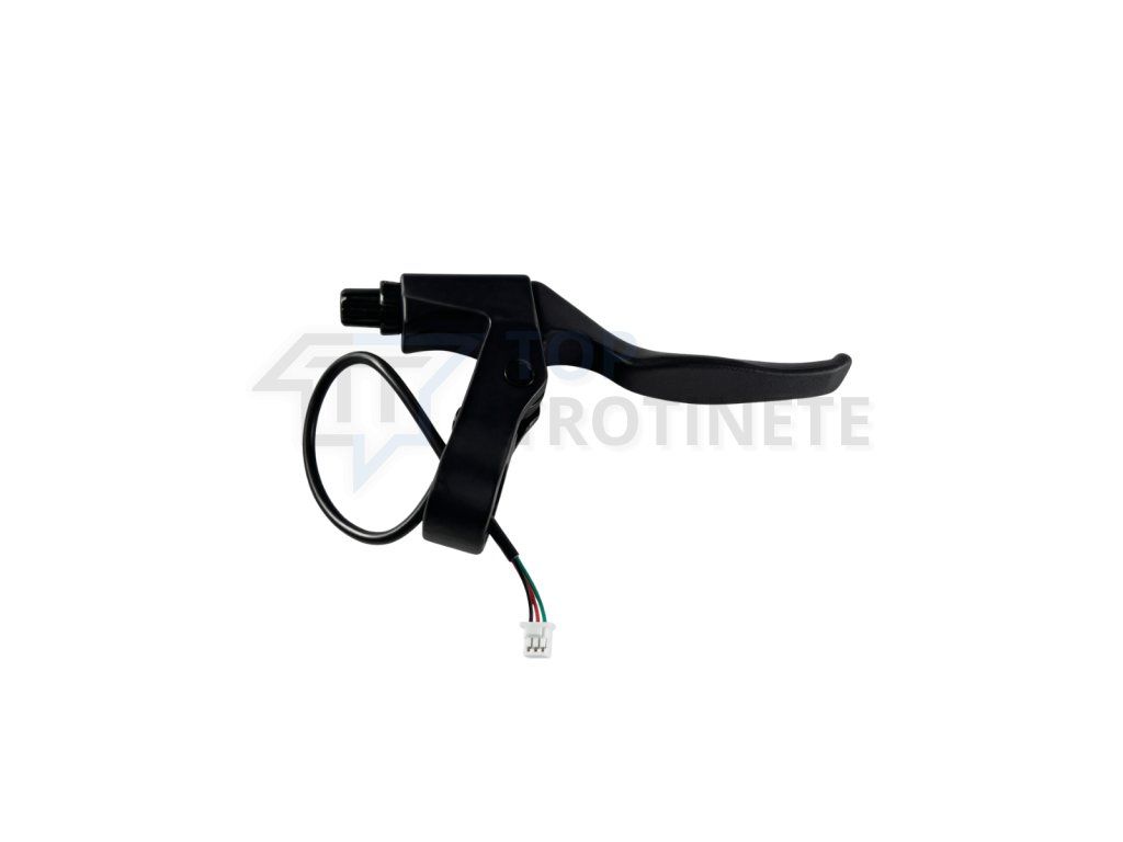 Senzor de siguranță pentru oprirea motorului: Senzorul electronic integrat cu cablu și conector (așa cum se vede în imagine) asigură oprirea instantanee a tracțiunii motorului la fiecare apăsare a frânei, sporind siguranța și scurtând distanța de frânare.