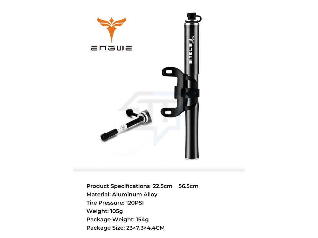 Această dimensiune mică a pompei o face ușor de depozitat și transportat, ceea ce este deosebit de convenabil pentru persoanele care călătoresc frecvent sau au spațiu limitat în rucsac sau bicicletă. Nu trebuie să vă faceți griji că trebuie să renunțați la unelte importante din cauza lipsei de spațiu, deoarece pompa Engwe se potrivește chiar și în cele mai mici spații. Este alegerea ideală pentru cei care doresc să aibă mereu alături un ajutor capabil în caz de pană sau dacă trebuie să își umfle cauciucurile.